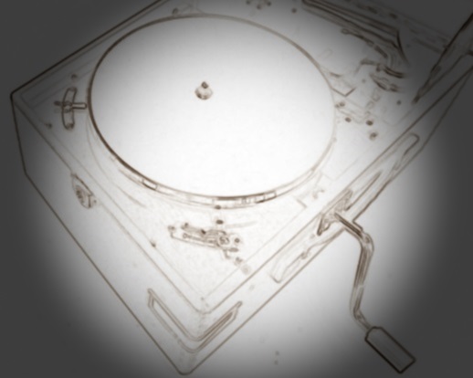 レコード盤をターンテーブルに載せて、針の足の付いた丸い大きなピックアップを静かに降ろし、レバーを押してターンテーブルを回転させると、